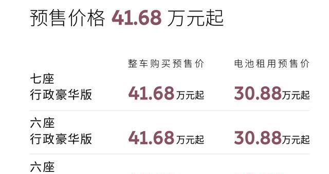 首先来说一下价格,目前全新一代蔚来ES8还处于预售阶段,三款配置车型的预售价区间为41.68-45.68万元,若是对比2024款车型的49.80-57.81万元,还是能够看出品牌诚意,尤其是高配版本的价格差距来到12万,如此幅度对于这个价位的车型来说也算是夸张了。另外蔚来品牌还有电池租用方案,若是选择这一方案的预售价区间则是30.88-34.88万元,也就是说和理想i8、特斯拉Model Y L相差不大的价格就能有一台车长超5.2米的大型纯电SUV,听起来是不是令人更心动了?